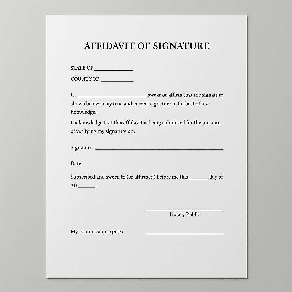 An Affidavit of Signature is a sworn, written statement in which a U.S. citizen formally confirms that the signature appearing on a specific document is authentic and belongs to them. This affidavit is typically used when additional verification is required for legal, financial, international, or administrative purposes.
